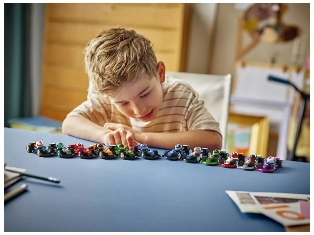 - Stavebnice Formule 1 pro děti – Fanoušci aut rozšíří svou sbírku o 1 z 12 závodních vozů F1® každé krabici, včetně 10 aut týmů F1, plus auta F1 a auta F1 ACADEMY™