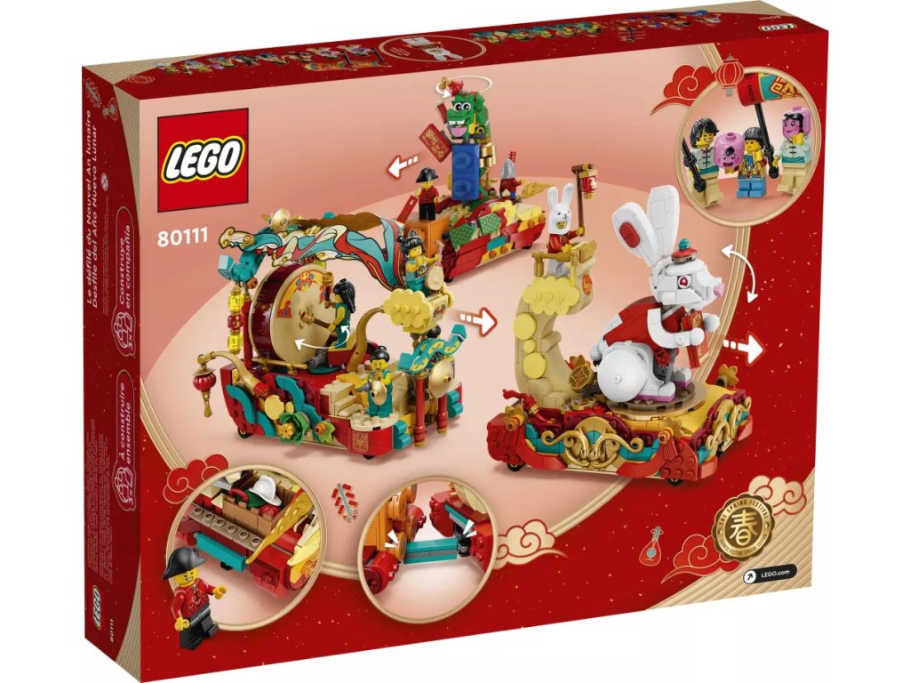 - Výstavní model Průvod na lunární Nový rok (80111) – Stavitelé LEGO® si mohou připomenout radostnou atmosféru tradičního pochodu na lunární Nový rok s touto stavebnicí obsahující 3 barevné propojitelné alegorické vozy