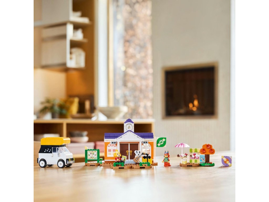 - Se 3 známými postavami z videohry Animal Crossing™ – Stavebnice z kostek obsahuje minifigurky K.K., Isabelle a Audie, model budovy Resident Services s kavárnou a pojízdný karavan