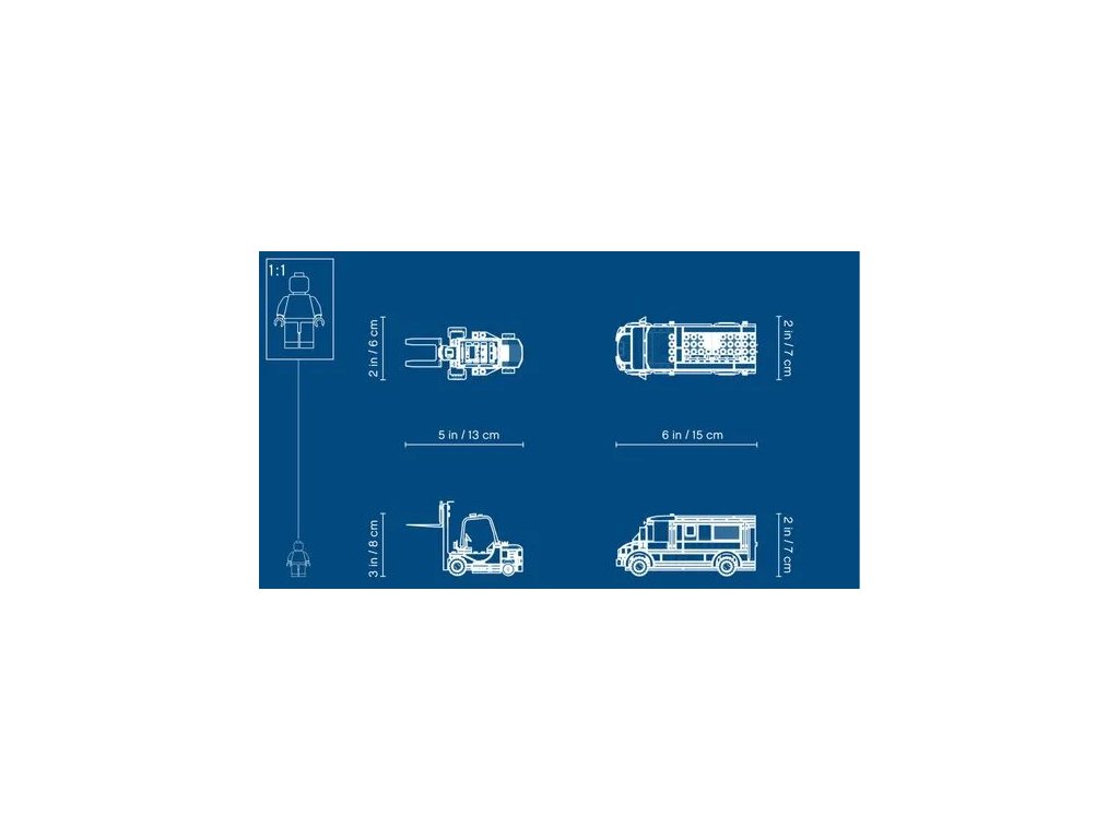 - Obsahuje 6 LEGO® minifigurek: 4 drážní pracovníci, bezpečnostní důstojník a zločinec.