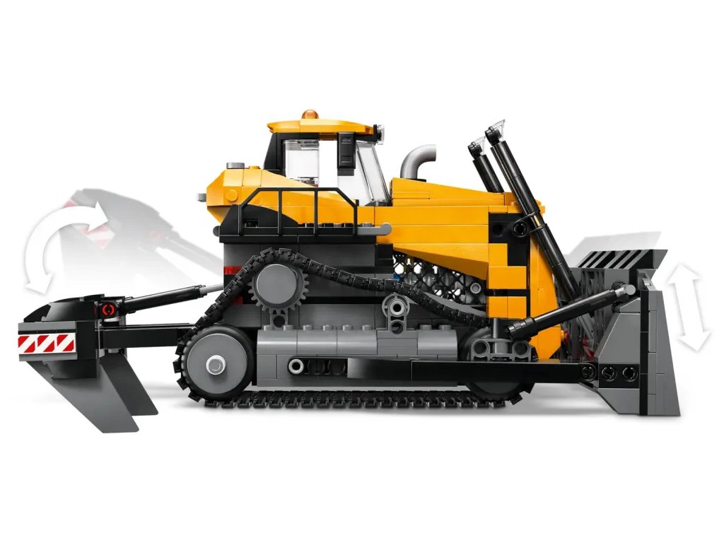 - Model buldozeru inspirovaný skutečnými vozidly a stroji – Děti můžou zvednout radlici a dvojitý zadní rozrývač a postrčit vozidlo, čímž se aktivují viditelné pohyblivé písty a rotující ventilátor chladiče