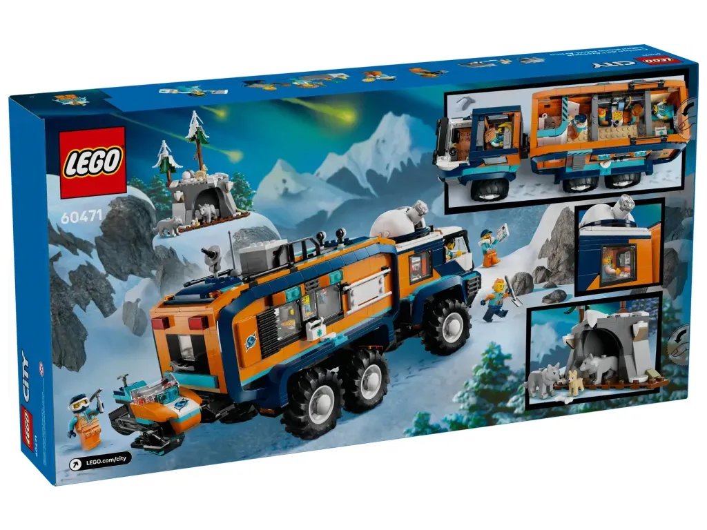 - Co najdete v krabici? – Průzkumné vozidlo, sněžný skútr, arktickou jeskyni, minifigurku řidiče, fotografa, vědce, zdravotníka a mechanika a 3 figurky arktických vlků