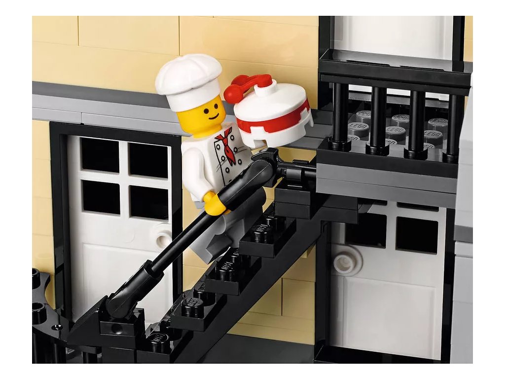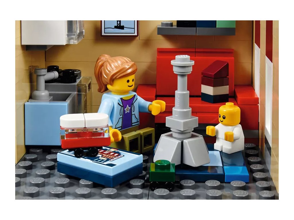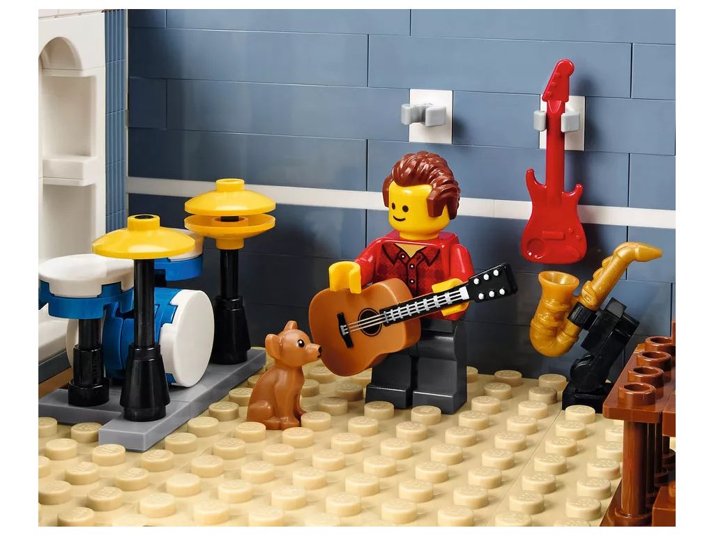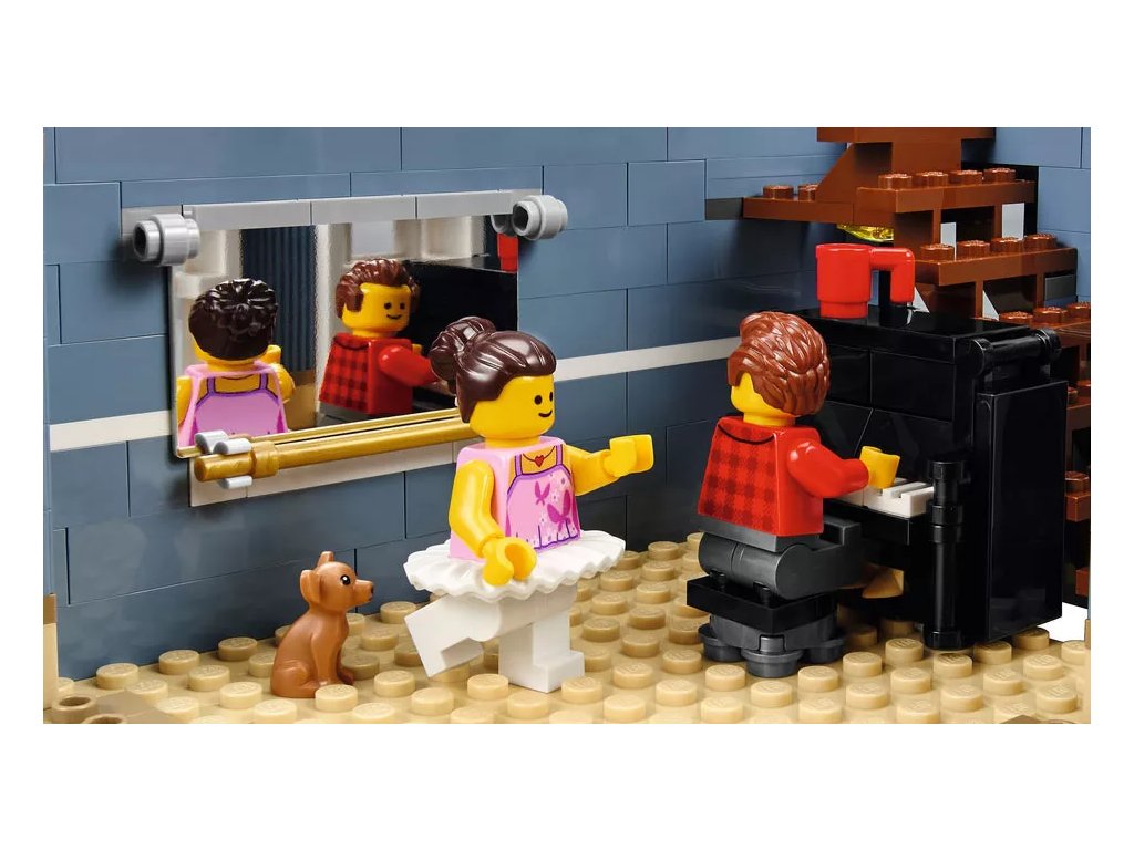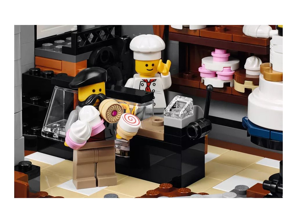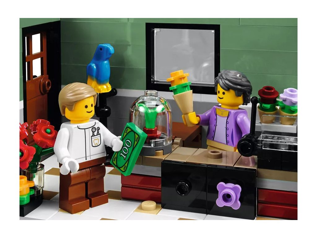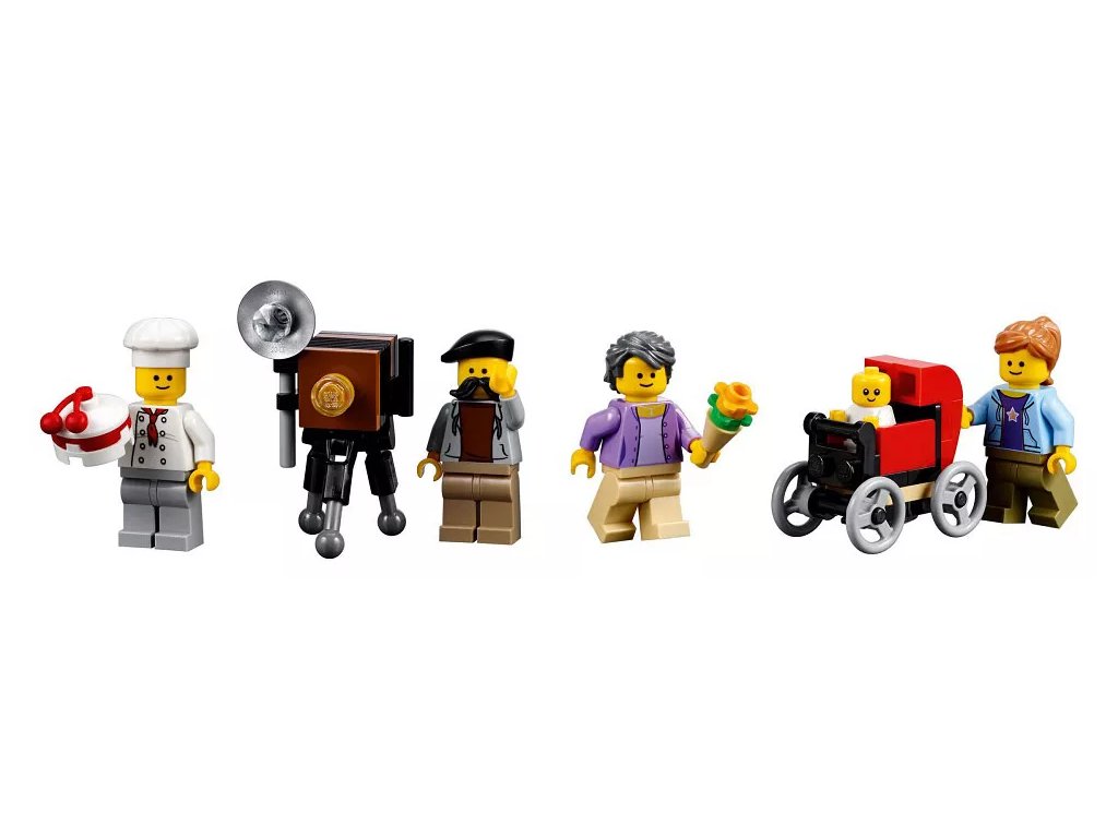 - Součástí je osm minifigurek: zubař, provozovatel kavárny, pekař, květinářka, prodavač v obchodě s hudebninami, tanečnice, fotograf a LEGO® fanynka, navíc figurka miminka.