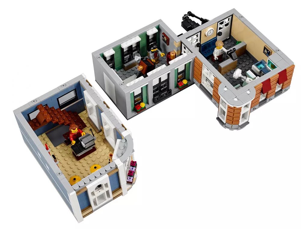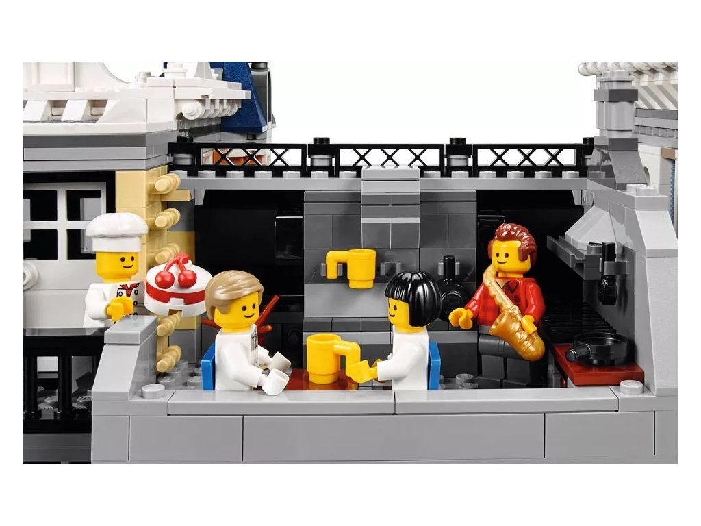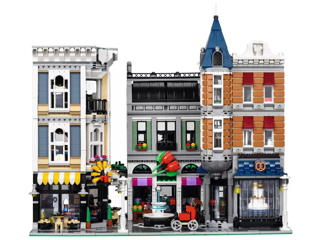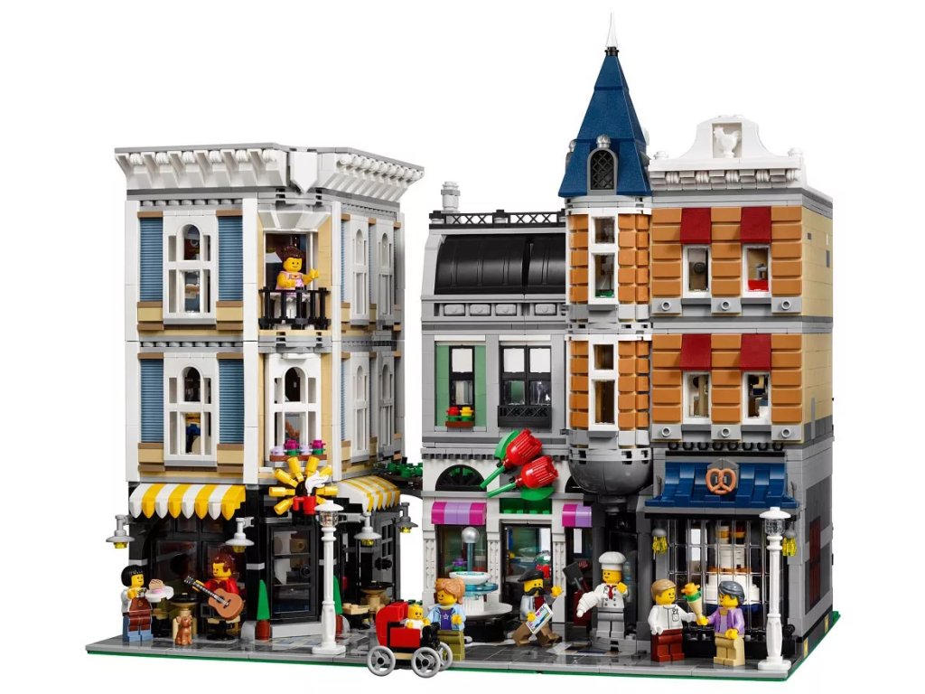 Udělej si výlet na úžasné Shromáždění na náměstí vyvinuté k oslavě deseti let LEGO® Modulárních budov. Tato sada obsahuje spoustu nepřekonatelně geniálních detailů a skrytých překvapení. Snadno snímatelné části budov poskytují přístup do dokonale propracovaných interiérů, které v přízemí obsahují pekárnu, květinářství a kavárnu, v první patře obchod s hudebninami, fotografický ateliér a zubní ordinaci, a ve druhém patře taneční ateliér a byt s přístupem na střešní terasu s grilem. Exteriér budovy obsahuje detailní chodník s venkovním nábytkem kavárny, fontánou, pouličními lampami a skvěle propracovanou fasádou s krásnými detailními okny a dveřmi, třemi postavitelnými cedulemi obchodů, věží a ozdobnou střechou. Součástí je osm minifigurek a figurka miminka.
