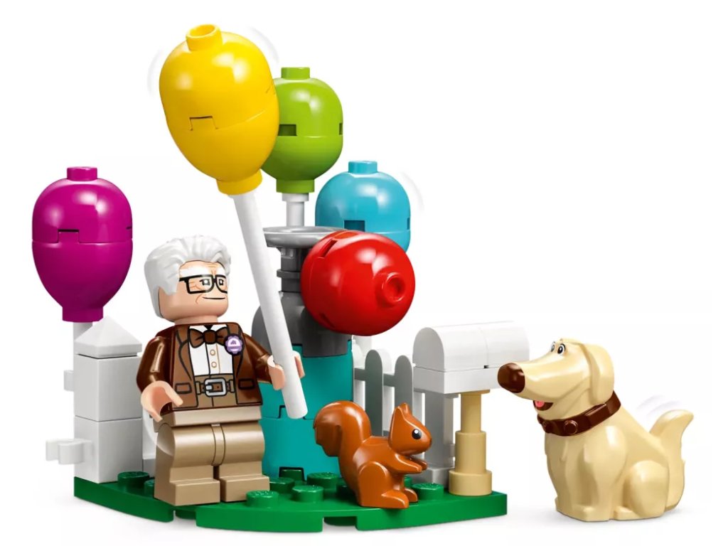 Součástí stavebnice jsou 2 minifigurky LEGO – Carl Fredricksen a Russell – a LEGO figurka psa Duga. Tato prémiová stavebnice je zábavným dárkem pro dospělé fanoušky filmu Vzhůru do oblak nebo starších dětí, které se chtějí připojit k nejnovějšímu trendu.