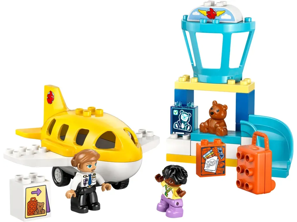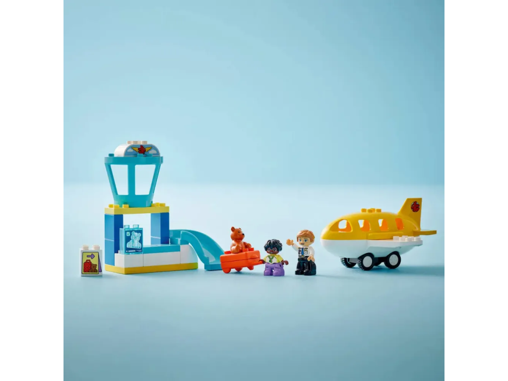 Tato hračka pro malé děti je plná vzdělávacích aktivit. Součástí je kolo emocí, které umožní celé rodině diskutovat o pocitech z cesty na rušné letiště nebo z cestování letadlem. Děti procvičí své jemné motorické schopnosti během balení otevíracího kufru a usazování figurek do letadla. Model navíc podporuje logické myšlení a inspiruje děti k tomu, aby zapojily kreativitu během cesty a staly se hrdiny vlastního dobrodružství LEGO DUPLO. Obsahuje 23 dílků.