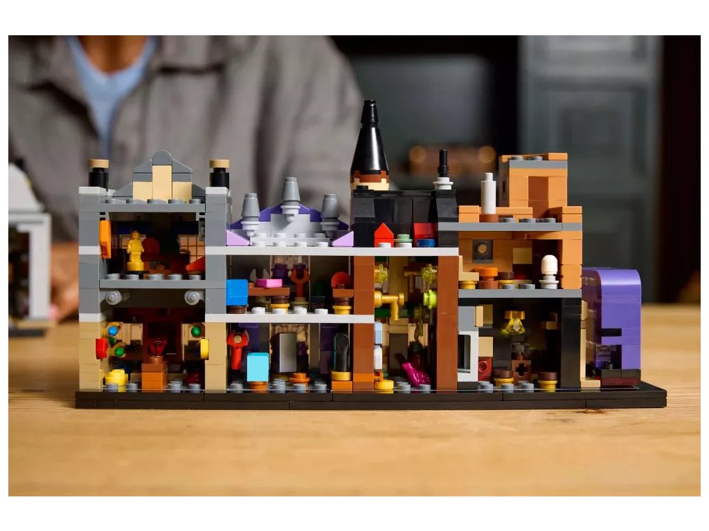 - Miniaturní obchody v Příčné ulici – Postavte si miniaturní verze slavných míst, jako je Velkoprodejna Mžourov, Gringottova kouzelnická banka, Děravý kotel, redakce Denního věštce a Záchranný kouzelnický autobus