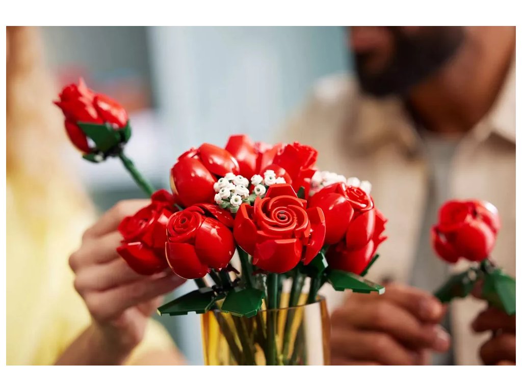 - Sestavitelná dekorační kytice – Odpočiňte si při stavění modelu Kytice růží z řady LEGO® Icons pro dospělé o samotě či s přáteli a rodinou