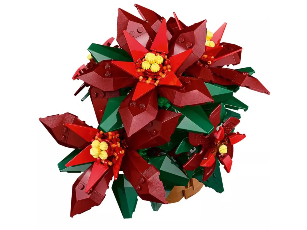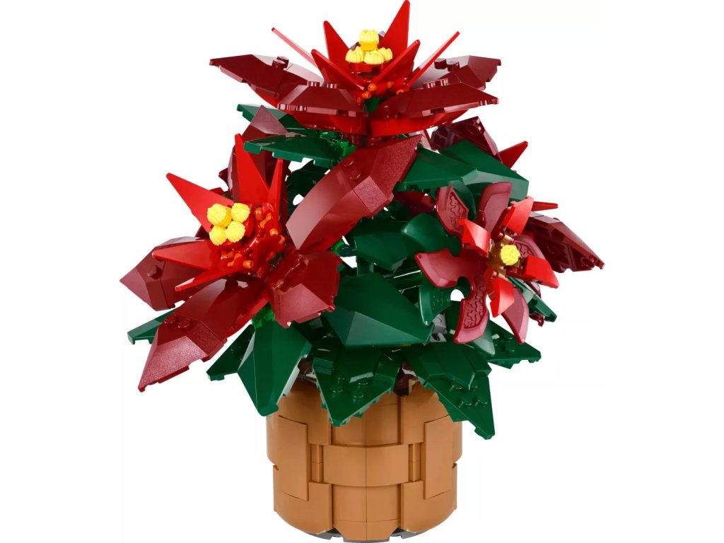 - Polohovatelná rostlina LEGO® – Tato replika oblíbené vánoční rostliny z kostek LEGO je polohovatelná a skládá se ze zelených listů a 5 hvězdicovitých shluků červených listů (listenů) se žlutými cyathiemi uprostřed