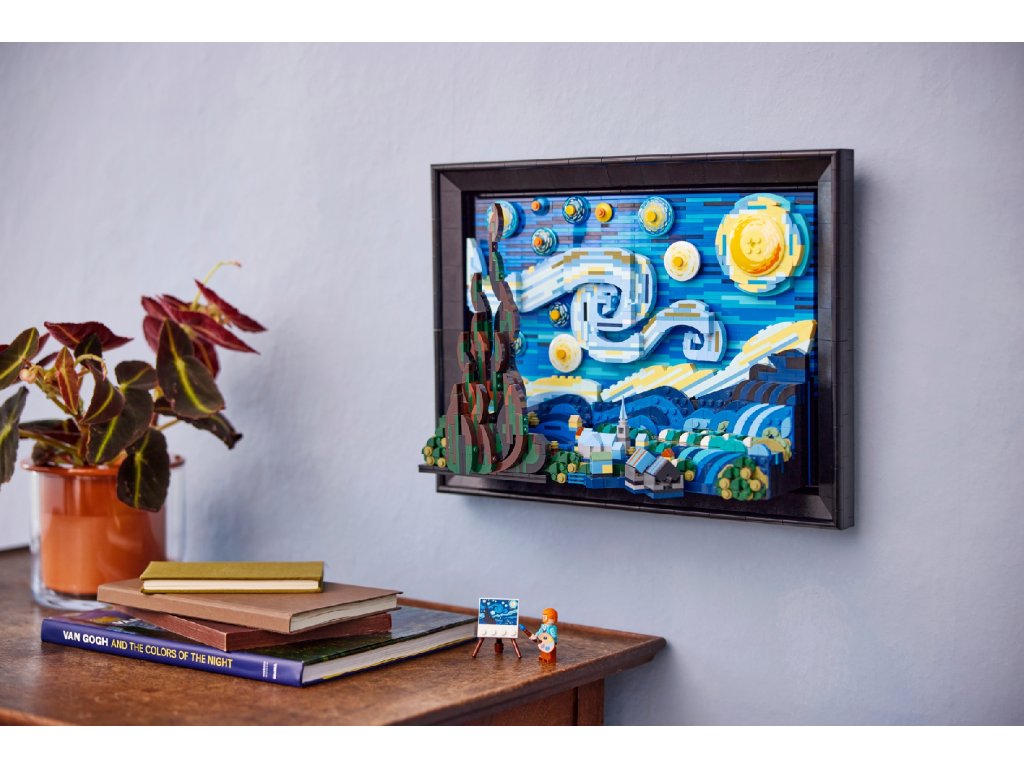 - Originální bytový doplněk – replika LEGO® Van Goghova uměleckého díla měří 28 cm na výšku, 38 cm na šířku a 12 cm do hloubky, a lze si ji pověsit na zeď nebo volně vystavit