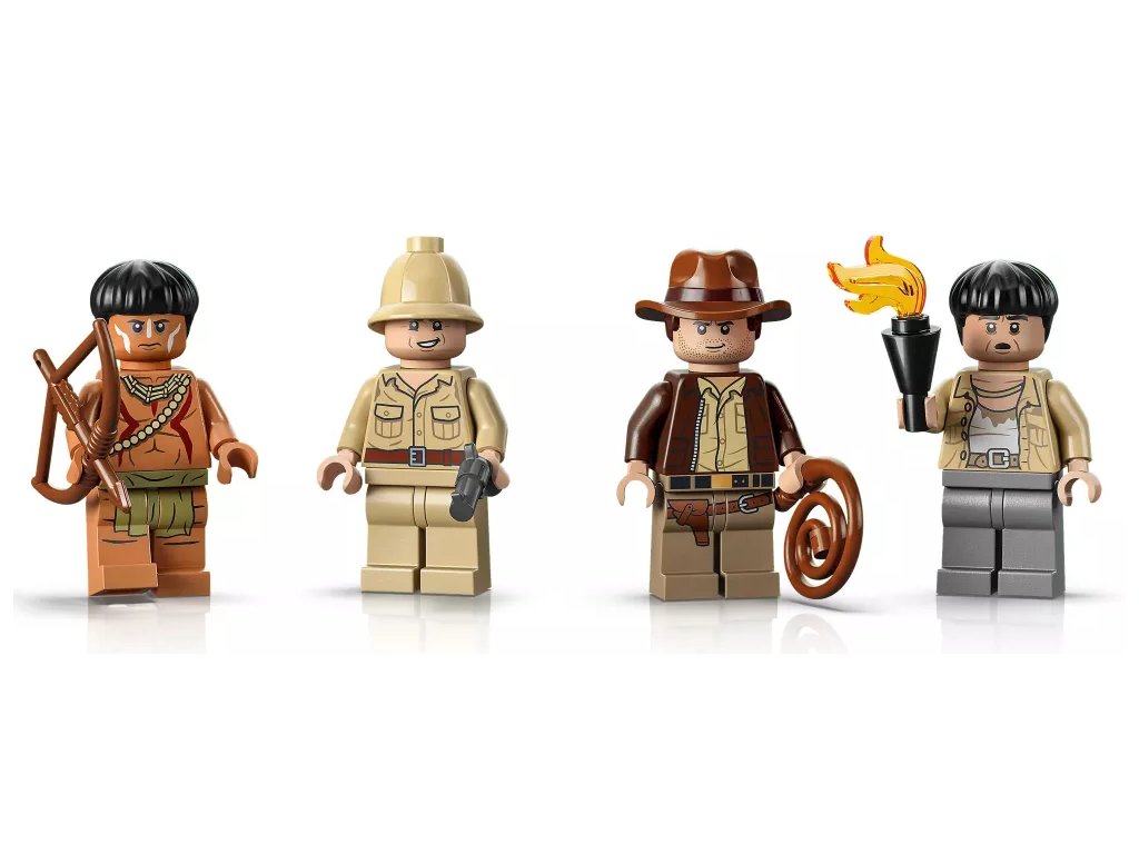 Sběratelský model LEGO Indiana Jones obsahuje 4 minifigurky – Indiana Jonese, Satipoa, Belloqa a válečníka Hovitů. Nechybí v ní spousta interaktivních funkcí, například 4 knoflíky na podstavci modelu, které mohou snížit sochu a osvětlit idol, strhnout zeď a zhoupnout Indiana Jonese přes jeskyni a otevřít padací dveře – pak můžete sledovat, jak Indy utíká před obřím balvanem.