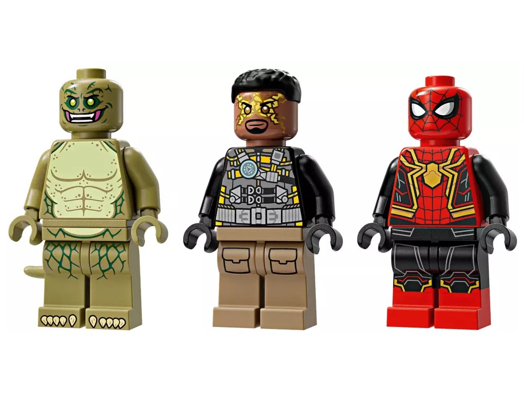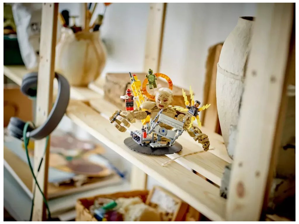 Součástí této kreativní stavebnice z řady LEGO Marvel se Spider-Manem jsou 3 padouchové: Sandman, Electro a Lizard (jedná se o zcela první stavebnici LEGO Marvel s minifigurkou Lizarda). Minifigurky lze umístit hned na několik míst v různých polohách a stavebnice tak nabízí nepřeberné možnosti hraní a vystavování. Sandman je plně pohyblivý a děti ho mohou otáčet a chytat do jeho obřích rukou Spider-Mana, který se nad ním vznáší na svém pavučinovém „laně“. Stavebnici lze kombinovat se sadou Spider-Manova konečná bitva (76261) (prodává se samostatně) pro další herních možnosti. Pro ještě více digitální zábavy je zde zábavná a intuitivní aplikace LEGO Builder, kde mohou stavitelé přibližovat a otáčet modely ve 3D a sledovat postup.