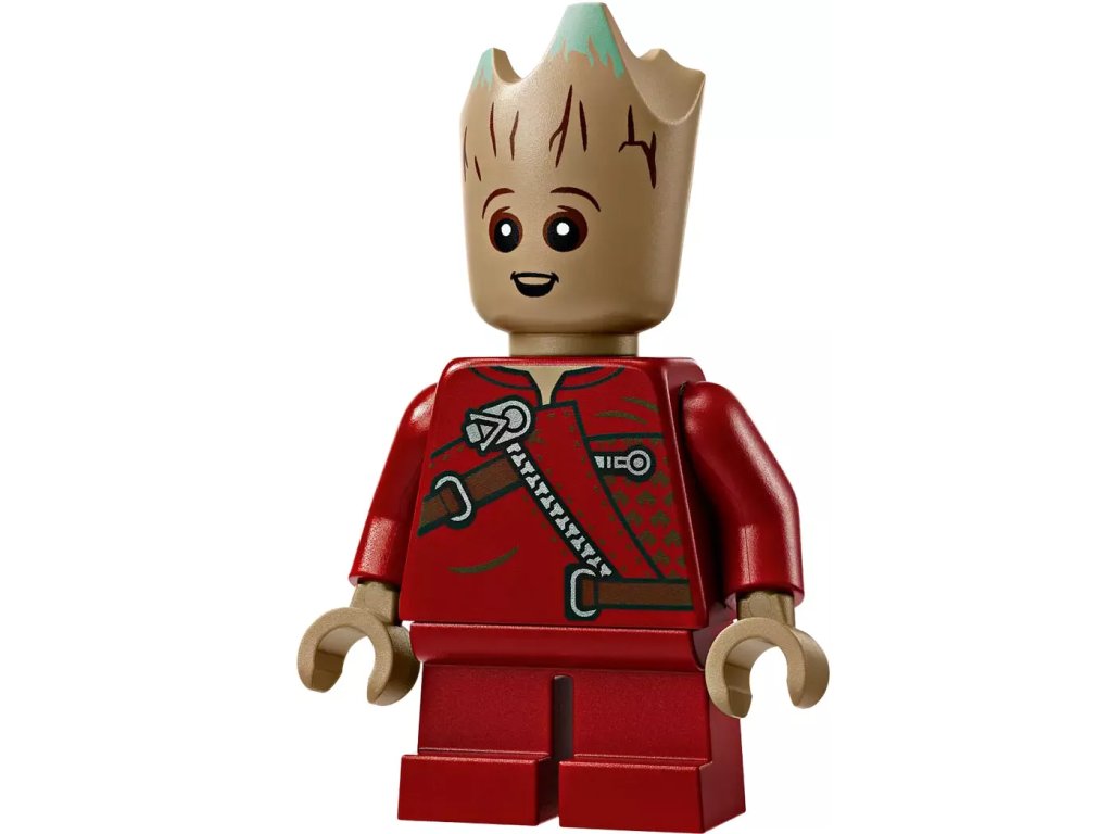 - 2 postavy ze světa Marvel – Součástí stavebnice jsou 2 Strážci galaxie: Rocket s pružinovým vystřelovačem a blasterem a minifigurka malého Groota, kterého lze připevnit na Rocketovo rameno