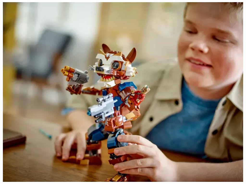 Tento sestavitelný pohyblivý model hrdiny dokonale zachycuje jeho rebelskou duši a lásku ke zbraním. Kromě loktů jsou všechny jeho klouby plně pohyblivé a přinášejí nekonečné možnosti hraní i vystavování. V rukou drží pružinový vystřelovač a blaster. Na rameni sedí jeho roztomilý společník, malý Groot. Pokud hledáte moderní stavebnici pro malé superhrdiny, LEGO Marvel Rocket a malý Groot představuje skvělou volbu. Pro ještě více digitální zábavy je zde zábavná a intuitivní aplikace LEGO Builder, kde mohou stavitelé přibližovat a otáčet modely ve 3D a sledovat postup.