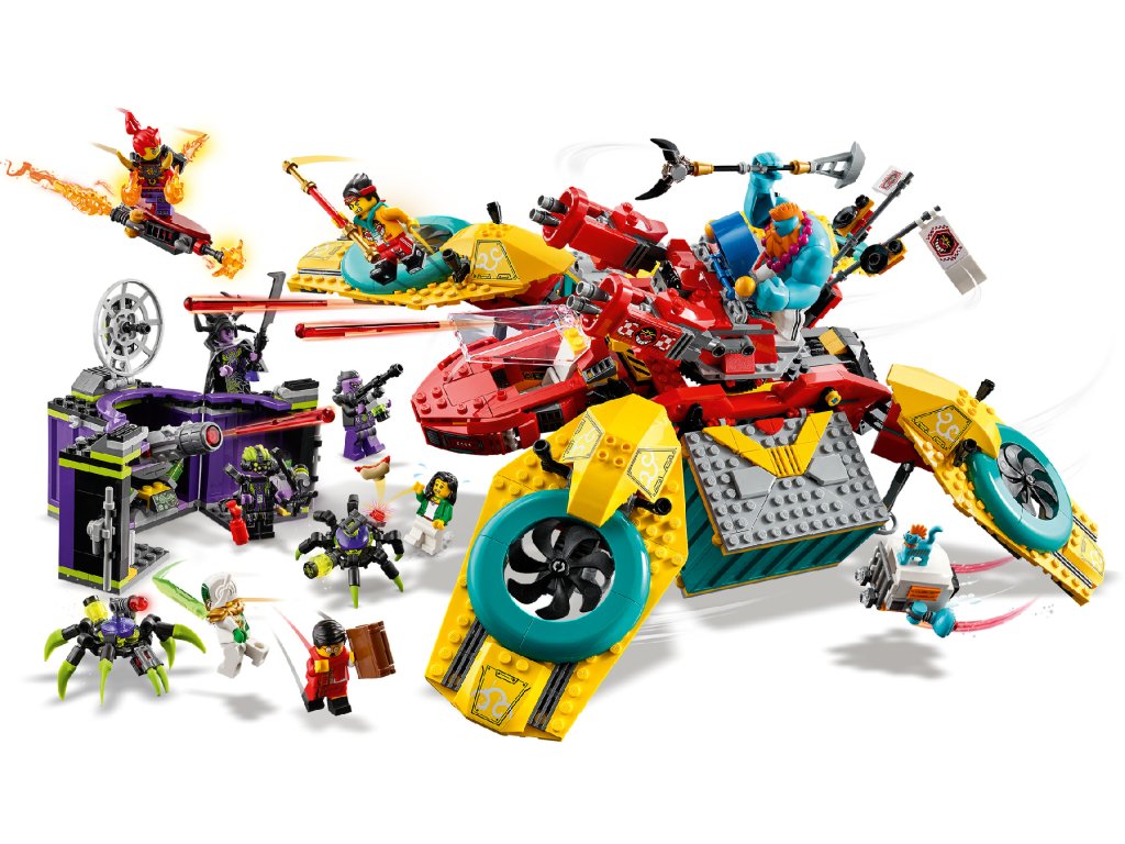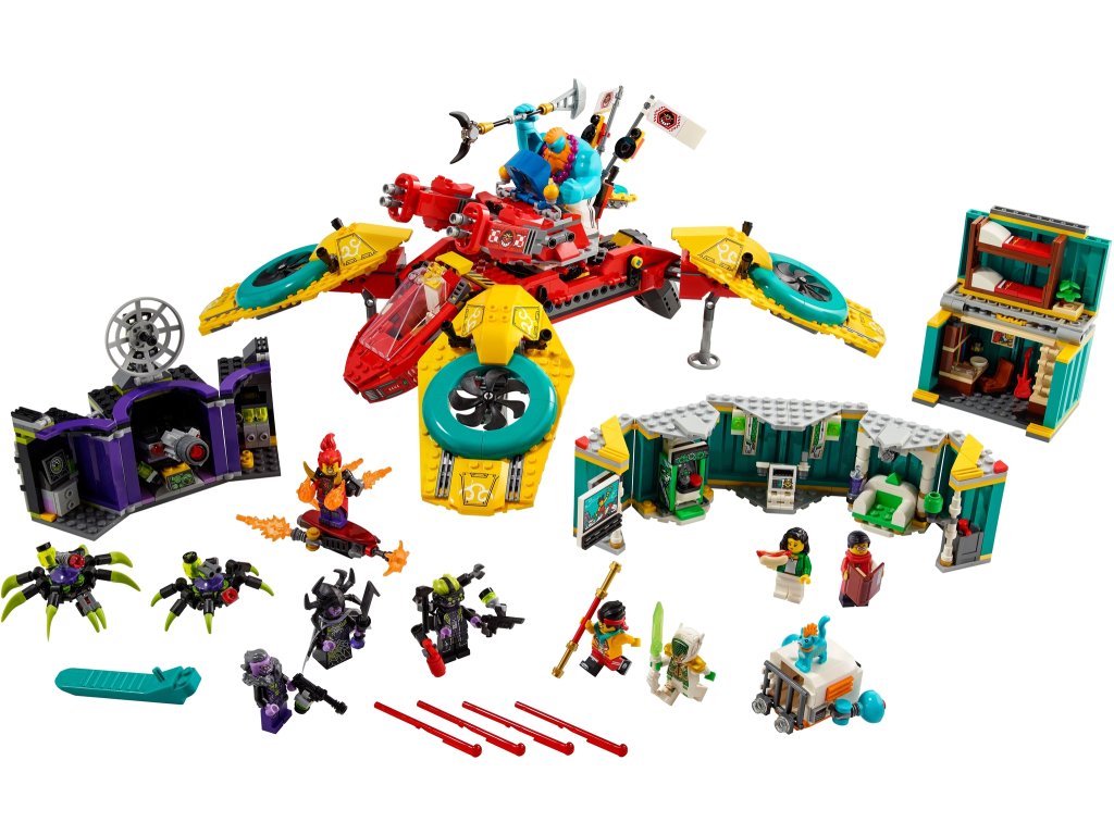 - Obsahuje 8 minifigurek: Monkie Kida, Mei, pana Tanga, Huntsmana, Syntaxe, Red Sona, Spider Queen a Fei, a navíc figurky Sandyho a kočky Mo, zbraně a spoustu doplňků pro ještě více herních možností.