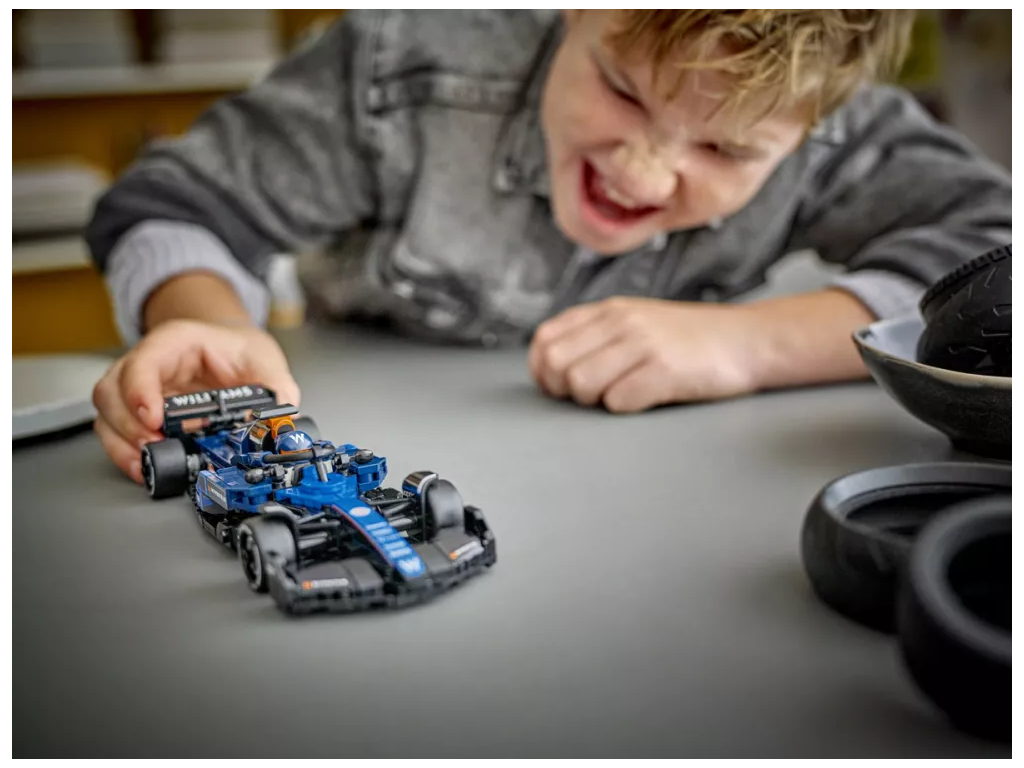 - 1 minifigurka – Tato stavebnice vozidla obsahuje minifigurku řidiče v outfitu Williams Racing s okřídlenou helmou, kterou děti usadí do kokpitu a vydají se s ní na napínavé závody