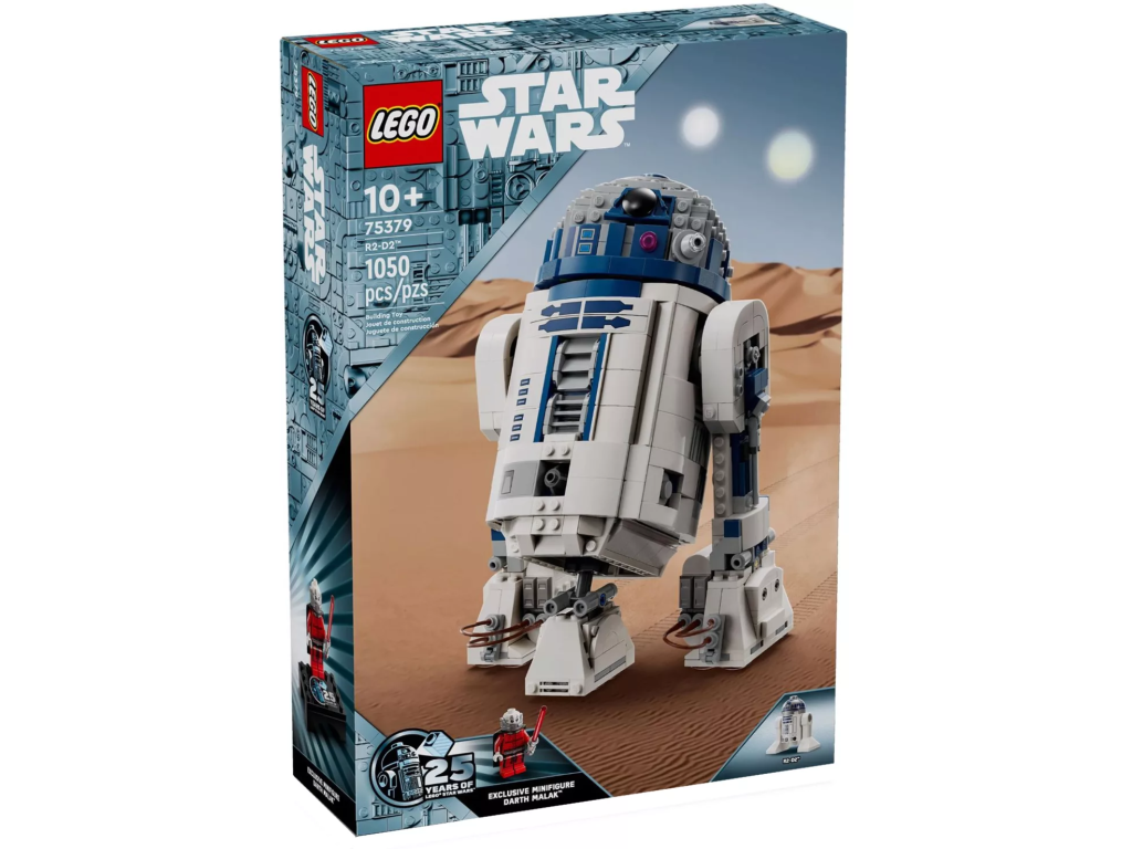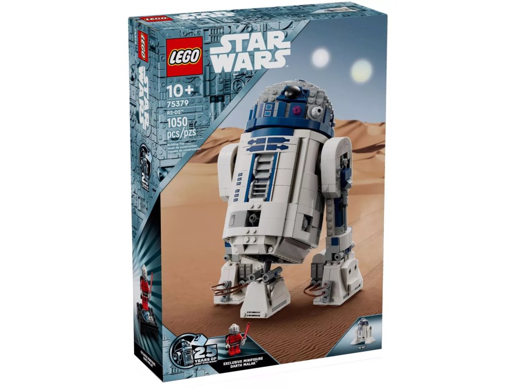 - Figurka LEGO® R2-D2 a minifigurka LEGO Star Wars™ – Součástí hlavního modelu je figurka LEGO R2-D2 a nechybí minifigurka Dartha Malaka k oslavě 25. výročí LEGO Star Wars